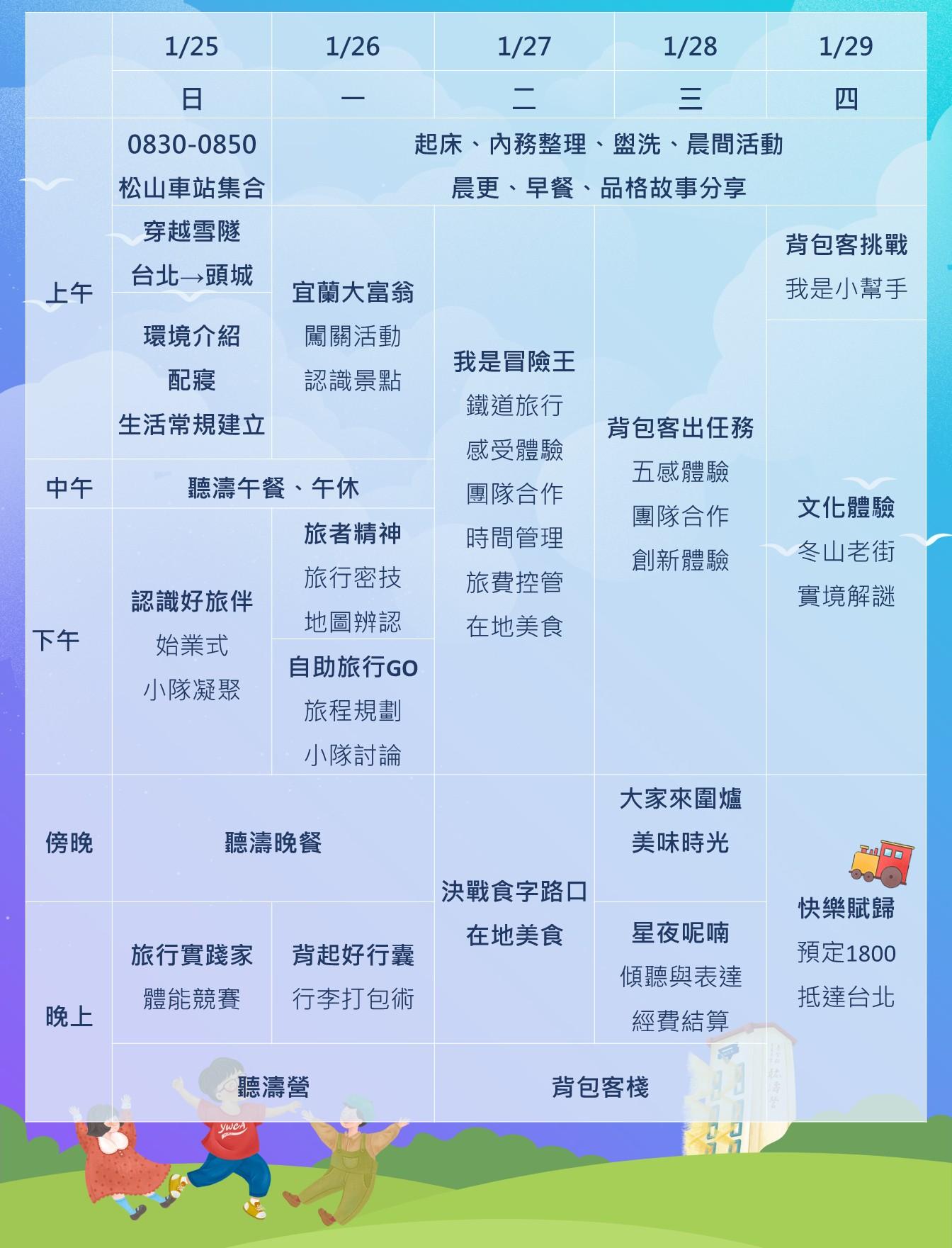 (活動期間實際活動內容與順序,會因天氣狀況、其他不可抗力之因素,以及學生學習效益等,本會將保留活動調整權利。)