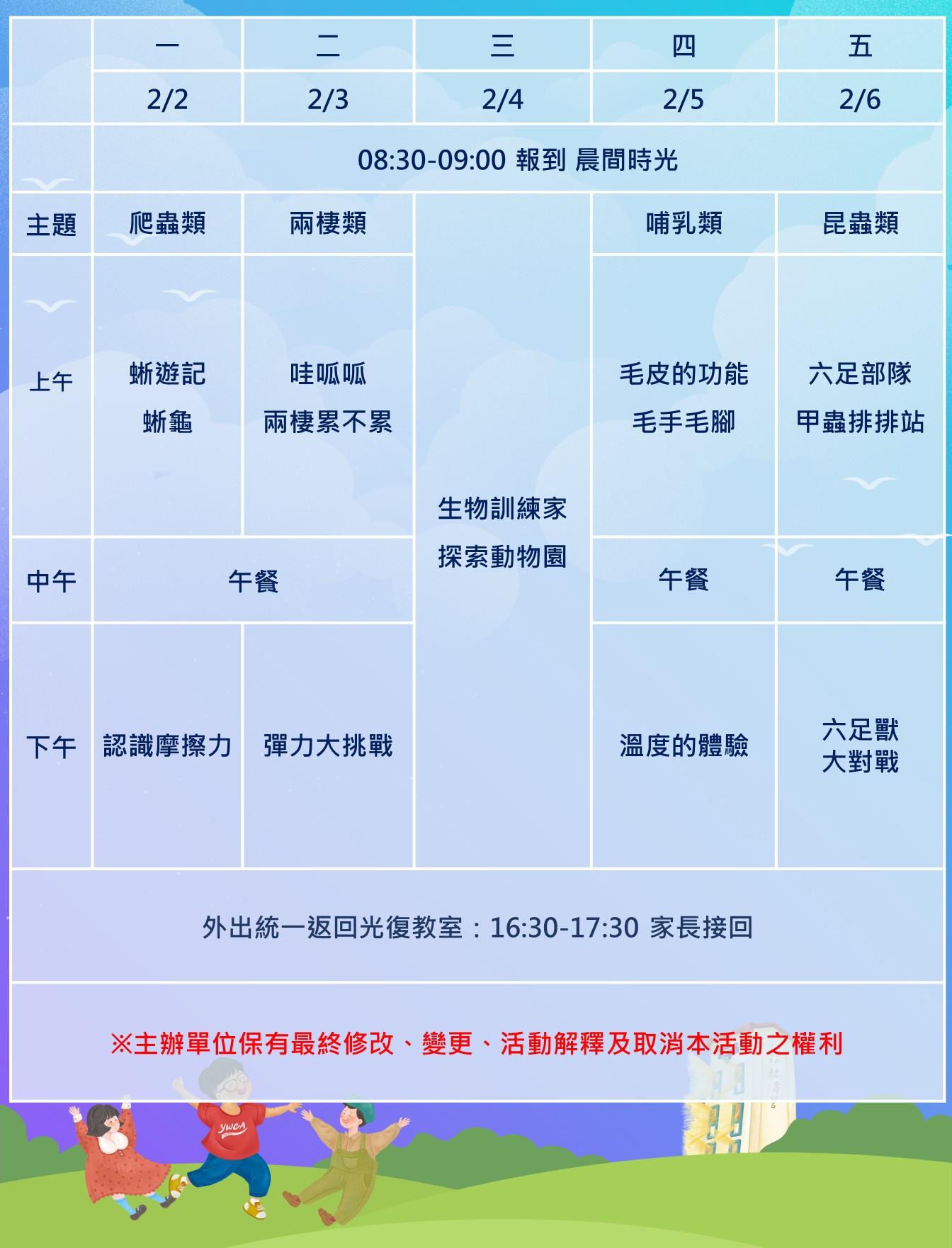 (活動期間實際活動內容與順序,會因天氣狀況、其他不可抗力之因素,以及學生學習效益等,本會將保留活動調整權利。)